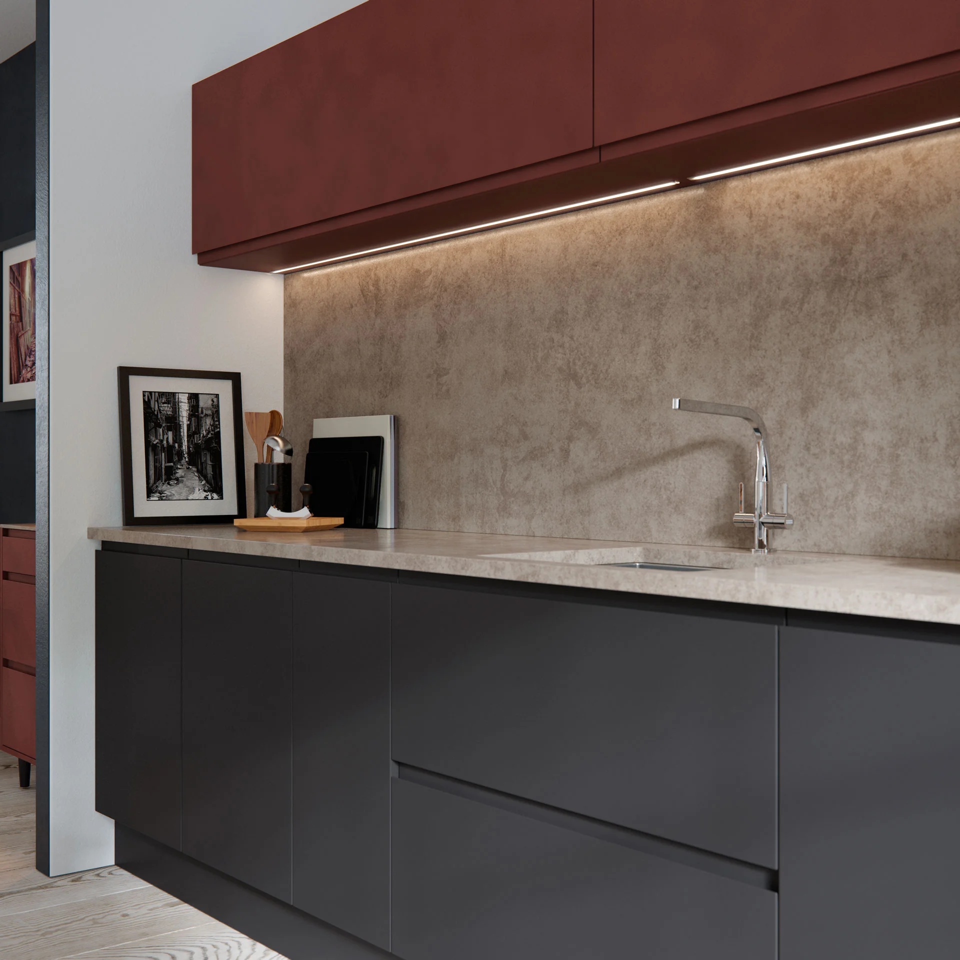 Our 4 Industrial Laminate doors, each with a different and interesting texture, help to create striking and beautiful combinations. Mixing well with both gloss and matt finishes.