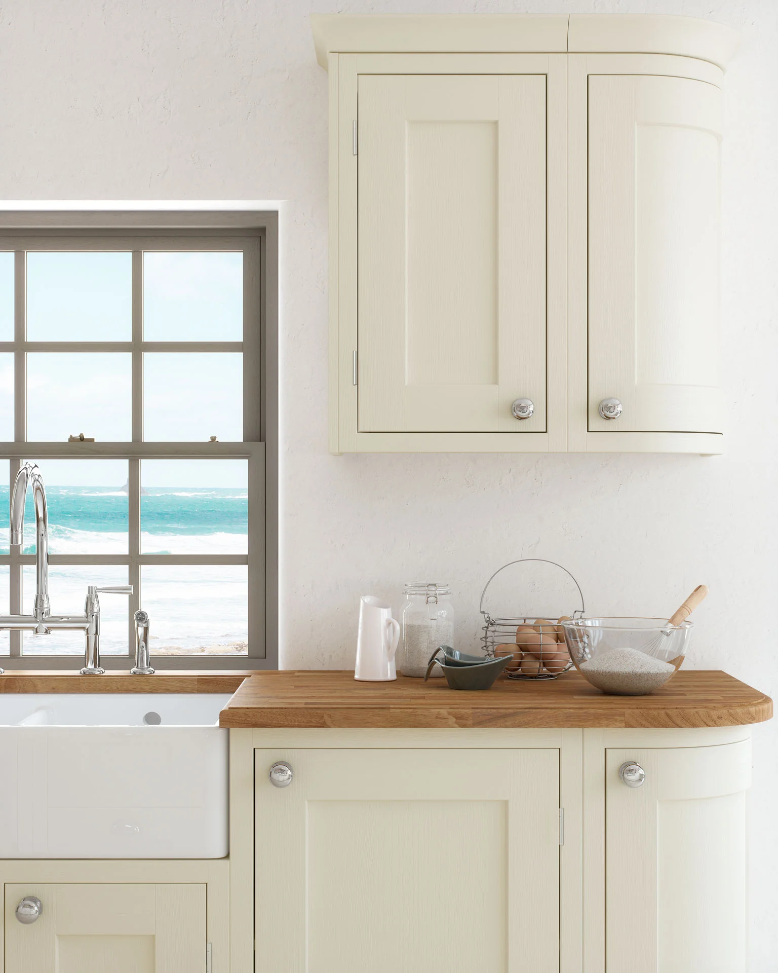 In this example a combination of square and rounded corners are used in the Matt Cream colour.